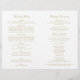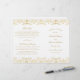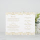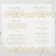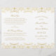 Lavish gold damask flourishes frame "Marriage Ceremony Uniting" in elegant script on a clean white background for a ceremony program with old-world opulence. The intricate gold filigree pattern creates a luxurious border, with a coordinating vintage-inspired backing. Inside pages are fully customisable for your bridal party, ceremony order, and a personal thank you message on the back cover. Programs are printed on text-weight paper and arrive flat, requiring a simple centre fold.