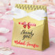 Express your gratitude with this elegant gold wedding favour box, personalised with the couple's names and special date. Designed with a luxurious white ribbon and a chic gold texture, this favour box adds a touch of class to any wedding celebration. Perfect for gifting sweets, small keepsakes, or special tokens of appreciation. Make your big day unforgettable with this custom-designed thank you box