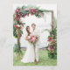 Elegant Gold Wedding Menu with Red Ribbon & Photo