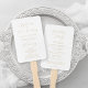 Guide your guests through your special day with this elegant gold wedding program fan. Featuring refined calligraphy and neatly organised details for the ceremony and wedding party, it’s both practical and stylish. Perfect for outdoor weddings, it doubles as a keepsake and adds a touch of sophistication to your celebration. Personalise with names, times, and heartfelt messages.