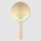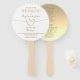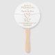 Simple, elegant, minimalist, white wedding program hand fan with gold foil rope heart and modern script.