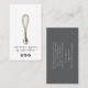 This elegant, modern, artisan baker's business card features an elegant gold whisk, paired with your company name and baker's name in a script calligraphy. The back is a soft grey with white typography and coordinating grey social media icons.