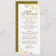 This beautiful menu features a beautiful design with gold text on a classic white background and golden faux foil curls and swirls in the corners. There is fancy script lettering for the title and space for the names of the couple and wedding date. Designed on Zazzle's standard greeting card product, this menu is available for digital download, making it the perfect choice for last minute ordering! Wonderful way to add some style and class to your wedding reception!