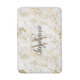 This chic, elegant design features a white and gold faux marble background. Personalise it with your monogram initial in gold coloured serif font and your name in charcoal grey calligraphy script.