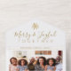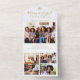 Modern stylish white gold 4 custom family photos Merry and Joyful together typography script simple minimal holiday tri fold card with snowflakes.