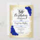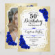 Elegant Gold White Royal Blue Photo 50th Birthday Invitation