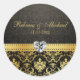 Elegant Goldand Black Damask with Diamond Heart Classic Round Sticker