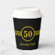 Elegant golden 50 Birthday party and golden stripes on black Cups. Text can be personalised for other ages, Birthdays, company meetings, business, party and more!