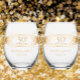 Elegant Golden 50th Anniversary Personalised Gift Stemless Wine Glass