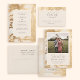 Elegant wedding invitation with a modern minimalist design. Featuring a beige cream colour scheme, abstract watercolor background with faux gold accents, and stylish typography that sets the tone for your special day.