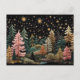 Elegant golden and green Christmas trees Postcard