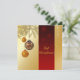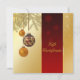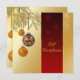 A noble and elegant Christmas illustration: golden Christmas tree branches with hanging Christmas ball ornaments on a red-golden background.