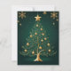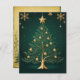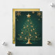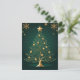 This elegant Christmas greeting card features a beautifully designed golden Christmas tree set against a dark green background. The tree is adorned with delicate golden ornaments and topped with a shining star. The intricate design includes shimmering golden lines and sparkles, creating a festive and luxurious feel. This card is perfect for sending holiday wishes to friends and family, capturing the essence of Christmas with its sophisticated and festive look. The back of the card continues the festive theme with a vintage-style design. It has an aged paper texture. The centre is blank, providing ample space for writing a personal message, adding a touch of nostalgia and charm.