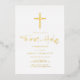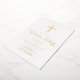 Celebrate your child’s sacred milestone with our Elegant Golden Cross First Communion Foil Invitation. This luxurious design features a shimmering golden foil cross and matching foil text, elegantly contrasting against a crisp white background. Perfectly blending reverence and sophistication, this invitation includes customisable details (name, date, time, venue, RSVP). Ideal for families seeking a timeless, premium keepsake to honour their child’s First Holy Communion. Printed on premium cardstock, this radiant design embodies the spiritual significance of the sacrament while adding a touch of opulence to your celebration.