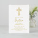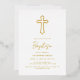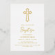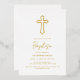 Celebrate a special Baptism with this elegant invitation featuring a chic golden cross and modern typography. The design combines simplicity with sophistication, showcasing a refined cross against a soft background, ideal for a timeless and memorable event. Perfect for both traditional and modern Baptism ceremonies, this invitation sets a welcoming and graceful tone.