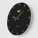 Elegant Golden Crown & Golden Dots on Black Large Clock