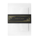 This beautiful belly band will hold your invitations and enclosures together, making the presentation more classy, stylish, and elegant. The classic black and gold design features your names in fancy script lettering inside of a gold faux foil box with ornate curls and swirls in the corners. Wonderful way to add that finishing touch to your invitation suite.
