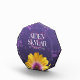 Celebrate your special day with this stylish wedding photo block, which features elegant white lettering with lavender purple confetti and a golden African daisy on a violet purple to black background. Customise with the newlyweds' names, and wedding date.