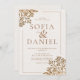 Elegant Golden Floral Beige Wedding Invitation
