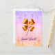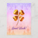 Send a little magic in the mail with this charming good luck postcard, featuring a shimmering golden four-leaf clover against a dreamy pink and lavender gradient background. Delicate vintage-style flourishes and a warm gradient give this design a nostalgic yet modern feel — perfect for wishing someone success, encouragement, or just a little extra luck in their day.