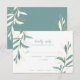 Simple and stylish, these are the perfect RSVP cards to send to all of your future wedding guests. The design features hand-painted watercolor green peonies foliage with gold leaves. All green text that is completely customisable. The back features the same elegant floral design but with a green background and white and gold botanicals.