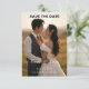 Announce your wedding with this elegant golden-hour Save the Date. It features a romantic couple in warm sunset lighting, customizable modern typography for names, dates, and location. Perfect for a timeless, sophisticated wedding aesthetic, engagements, outdoor, rustic, or classic themes.