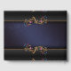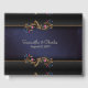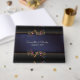 Beautiful wedding guest book done in a navy blue damask design with black and gold borders, on the top and bottom. Graphics of gold tone metallic looking floral flourishes with pink and blue enamel looking accents, decorate the front and back of the book. Personalise the custom text, for your special day.
