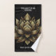 Create an oasis of peace for yourself with this bath towel set, which features an AI-generated design of a golden lotus flower with the (customisable) benediction, "the light in me honours the light in you."