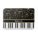 An elegant stylish bath mat that will bring a song and a smile to any bathroon featuring a design for the piano player or musician featuring golden coloured musical notes and a piano keyboard on a black background with gold and black strip to add the name of your choice to create a unique personalised music themed gift for any occasion