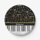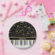 An elegant stylish design for the piano player or musician featuring golden coloured musical notes and a piano keyboard on a black background with gold and black strip to add the name of your choice to create a unique personalised music themed gift for any occasion