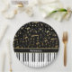 An elegant stylish design for the piano player or musician featuring golden coloured musical notes and a piano keyboard on a black background with gold and black strip to add the name of your choice to create a unique personalised music themed gift for any occasion