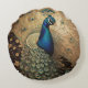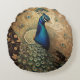 Elegant Golden Peacock Bird Round Cushion