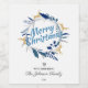 This elegant Christmas wine label features a wreath with golden reindeer and blue and grey greenery. Merry Christmas is written in a beautiful handwritten script. Personalise this card by adding names and year.