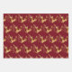 Elegant Golden Reindeers Snowflakes and Poinsettia Wrapping Paper Sheet