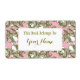An elegant custom bookplate label with script and block letters in faux golds and elegant vintage rose etchings in white and faux golds on pale pink.