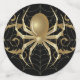 Very Elegant, extremely unique, this Glistening gold spiders on webs in front of a black back ground. This is not for everyone but definitely very unique and oddly enough this is so elegant as the webs sparkle - very elegant collection for your wedding , party or anniversary. This is a great Halloween Wedding choice. Perhaps a wedding for a pest control specialist, or even for that Arachnologist in the family.