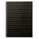 Beautiful notebook with elegant golden swirling dots on black background. These gold coloured polka dots form four-arm swirling pattern.