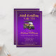 Elegant Golf Theme Cart Purple Gold 50th Birthday Invitation
