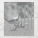 Elegant grey colour monogram with initials and name, a great gift for golf lovers. This design for him features a golf ball about to be hit by a driver golf club on a well tended golf course. The design is in greyscale, both the picture and thecustom text. In front of the image is custom monogram initials in a soft grey but an elegant sans serif font. At the very front of this custom piece is space for a name in a darker grey. This makes a special and unique gift for a golf player Dad, Grandpa, boyfriend, partner, husband, brother, or as a gift for a retiring colleague who plans to get a lot of golfing in.