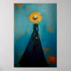 🖤 Step into a world of mystery and elegance with this captivating image of a sunflower depicted as a woman. Her sunflower head serves as a radiant face, while her dark, flowing gown highlights her willowy and graceful stature. In her hand, she clasps a small sunflower, perhaps a handbag, a reminder of home, or a token of love. This artwork captures a moment of departure, as the sunflower woman appears to have left her garden home, setting off on an unknown journey. Perfect for adding a touch of nature-inspired whimsy and elegance to any space, this piece is ideal for living rooms, bedrooms, or creative spaces. NOTE 1. To adjust this 2:3 ratio image to fit a different size poster, canvas, etc., first hit the "EDIT" button. Click on the layer—there is only the one—and drag the image inwards or outwards using the corners or use the SIZE + and - buttons. If you don't like your choice, there's an "UNDO" button, and also refreshing the page will reset everything back to the start. These features open up a lot of possibilities for you to easily customize the image to your liking! NOTE 2. This image is available facing left or right and is transferable to all Zazzle products.
