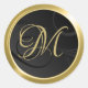 Elegant Gradient Swirls Monogram Black Gold Classic Round Sticker