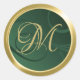 Elegant Gradient Swirls Monogram Green Gold Classic Round Sticker