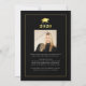Announce your high school or college graduate's achievement with this modern black, gold and white) announcement featuring an elegant faux metallic gold foil title CLASS OF 2024 and graduation cap and 2 photos (one on the front and one on the back) and your graduate's name in an elegant handwritten script. The back is designed to include information about your graduate's achievements, activities and future plans as desired. ASSISTANCE: For help with design modification/personalisation, colour change, transferring the design to another product or if you would like coordinating items, contact the designer BEFORE ORDERING via Zazzle Chat or makeitaboutyoustore@gmail.com.