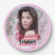 Customise your graduation celebration with paper plates that features a photo of your grad, class year and school name. All text is completely customisable. Created to coordinate with our Elegant Graduate Collection, grab a few other items in the collection to make a super cute festive party. Fonts styles and colours can be edited in the design tool.