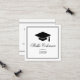 Modern graduation name card with black hat and the graduate name highlighted with an elegant calligraphy script font.