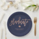 Elegant Graduate | Navy Blue and Faux Rose Gold Paper Plate