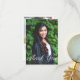 This elegant white typography overlay photo graduation thank you card features chic white script over your high school or college graduate photograph for the senior class of 2025. Customize with your name and class under the lovely calligraphy and add your own text and 2nd picture on the back.