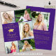 Announce your high school or college graduate's achievement with this elegant purple and gold (or other background colour) photo announcement featuring 6 photos (5 on the front and 1 on the back), an elegant faux metallic gold foil graduation cap or mortarboard, the title YEAR GRADUATE with your graduate's name in a trendy handwritten script and school name. The back is designed to include information about your graduates achievements, activities and future plans as desired. ASSISTANCE: For help with design modification/personalisation, colour change, transferring the design to another product or if you would like coordinating items, contact the designer BEFORE ORDERING via Zazzle Chat or makeitaboutyoustore@gmail.com.
