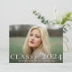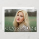 A photo graduation announcement designed by Stacey Meacham featuring a large classic class of type and graduation year. All text is completely customisable allowing you to change the font, colour and/or placement of all of the words.