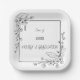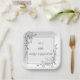 Elegant Graduation Black and white Floral Border paper plates. This personalised custom paper plates featuring a delicate stylish black and white line art drawing illustrating a stylish simple floral border decorated with graduate cap, and trendy hand lettered script typography.